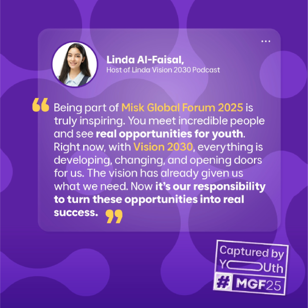 At just 13 years old, Linda Al-Faisal is already inspiring countless youth, and at #MGF25, she was motivated to keep working towards making Vision 2030 a reality.