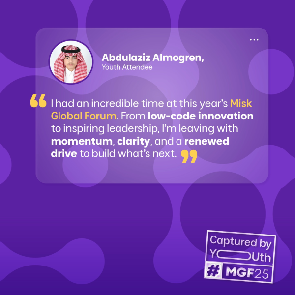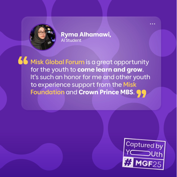 Reflecting on #MGF25, AI Student Ryma Alhamawi highlighted the immense learning and growth opportunities available for youth at the Forum.